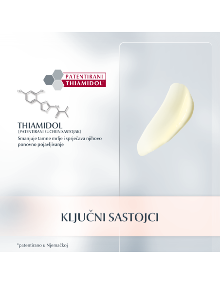 Sadrži thiamidol, djelotvoran i patentiran sastojak koji djeluje na pojavu hiperpigmentacije smanjenjem proizvodnje melanina. Klinički i dermatološki dokazano smanjuju tamne mrlje i sprječava njihovo ponovno pojavljivanje. Prvi rezultati su vidljivi nakon dva tjedna i kontinuirano se poboljšavaju uslijed redovite primjene.
