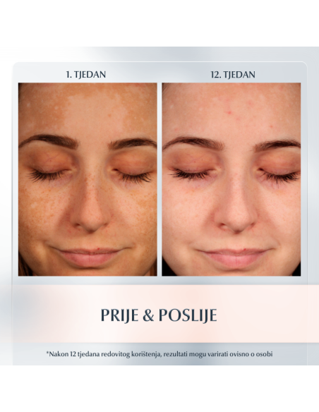 Učinkovito smanjuje tamne mrlje i sprječava njihovo ponovno pojavljivanje.