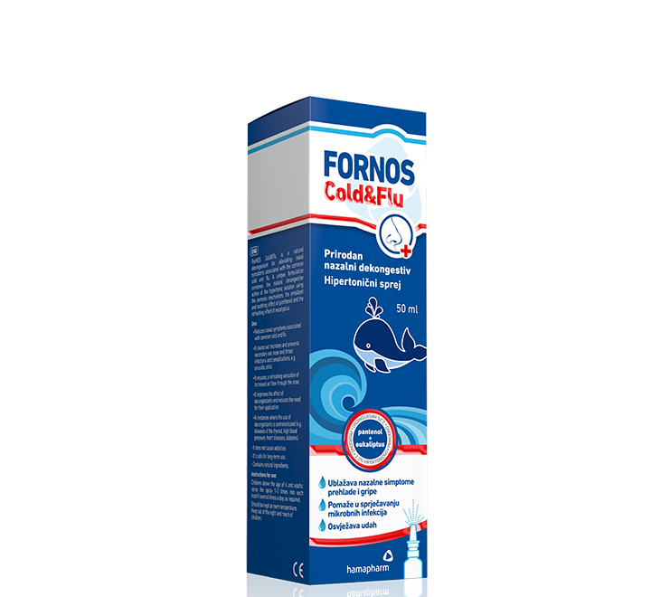 ForNOS Cold&Flu je prirodan dekongestiv za ublažavanje nazalnih simptoma povezanih s običnom prehladom i gripom. Jedinstvena formulacija kombinira prirodno dekongestivno djelovanje hipertonične otopine putem mehanizma osmoze, emolijentno i umirujuće djelovanje pantenola te osvježavajući efekt eukaliptusa.