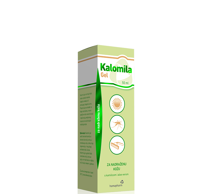 Kalomila gel je namijenjen umirenju nadražene, crvene i osjetljive kože. Koža je najčešće nadražena nakon predugog izlaganja suncu, uboda insekata, brijanja i depiliranja, pretjeranog znojenja, ožeglina meduza. Sadrži ekstrakt kamilice i aloe vere koji umiruju i omekšavaju kožu. Tradicionalno se koriste kod nadražene kože, opeklina, uboda insekata, alergijskog osipa, akni, rana, ekcema.