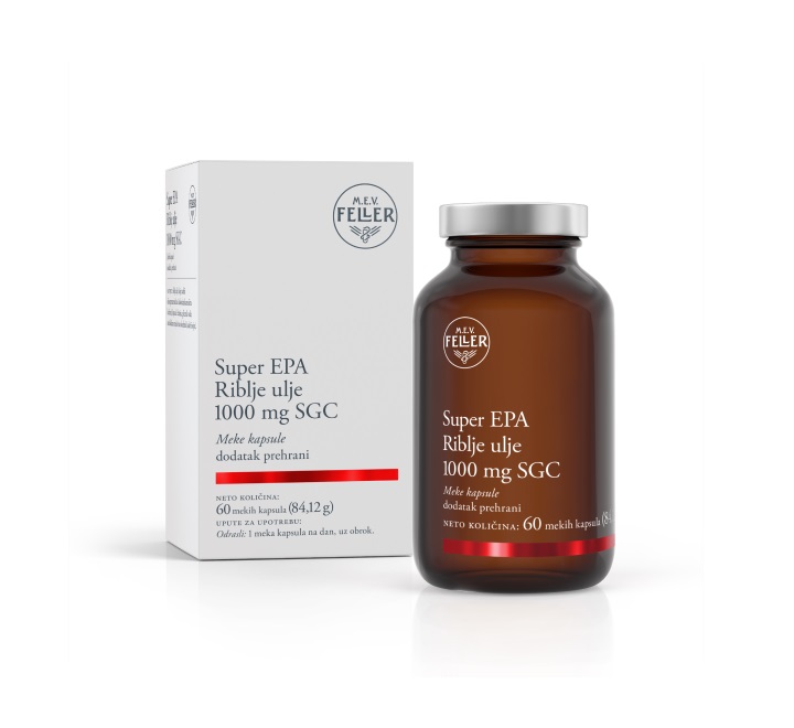 M.E.V. FELLER Super EPA Riblje ulje 1000 mg SGC u jednoj mekoj kapsuli sadrži 330 mg EPA i 220 mg DHA. Nezasićene masne kiseline EPA (eikosapentaenoična kiselina) i DHA (dokosaheksaenoična kiselina) pridonose normalnoj funkciji srca.