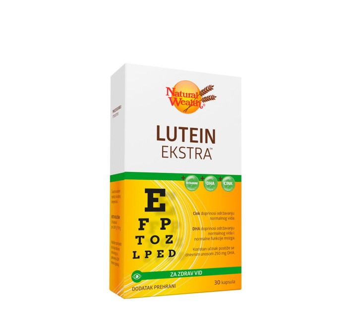 - Dugotrajna upotreba digitalnih ekrana izlaže oči plavom svjetlu, što može predstavljati izazov za naše oči. Natural Wealth Lutein Ekstra sadrži hranjive tvari važne za zdravlje očiju.