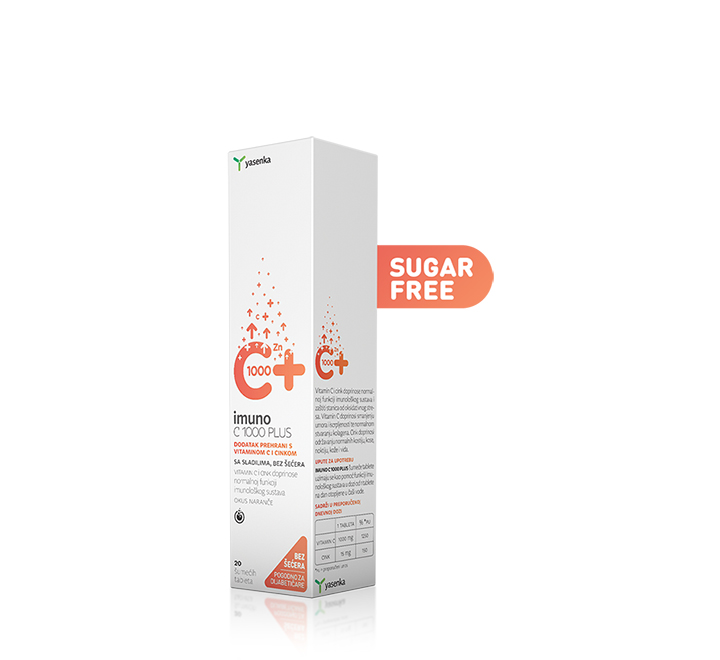 Imuno C 1000 PLUS šumeće tablete sadrže 1000 mg vitamina C (1250 % PU) i 15 mg cinka koji pridonose normalnoj funkciji imunološkog sustava i zaštiti stanica od oksidativnog stresa.