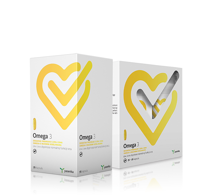 Omega-3 kapsule sadrže 1000 mg pročišćenog ribljeg ulja s najmanje 35 % omega3 masnih kiselina. Eikosapentaenoična kiselina (EPA) i dokosaheksaenoična kiselina (DHA) doprinose normalnoj funkciji srca. Blagotvoran učinak postiže se dnevnim unosom od 250 mg EPA i DHA.